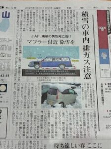 各社新聞にも取り上げてありますが一酸化炭素は無色無臭ということで、社内に充満しないようにマフラー付近の除雪には気を配ることが大切だということでした。